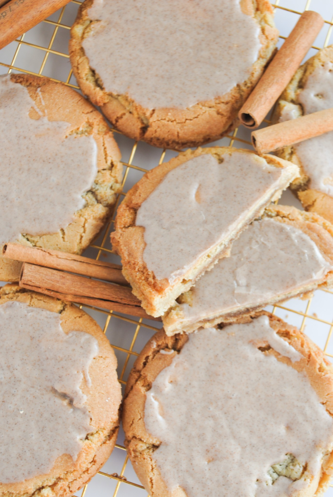 - Once cookies are cooled, top cookies with 1 tbsp of cinnamon glaze. Allow glaze to dry. Enjoy!