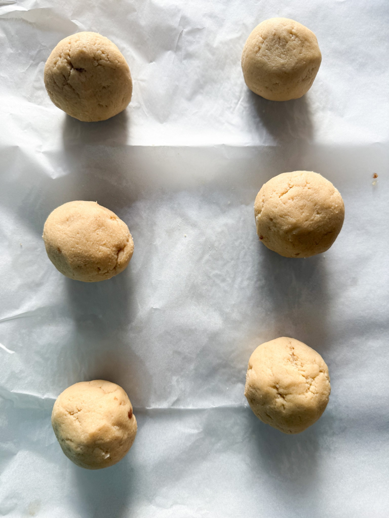 - Place finished dough balls on a cookie sheet, cover, and chill for 30 minutes.