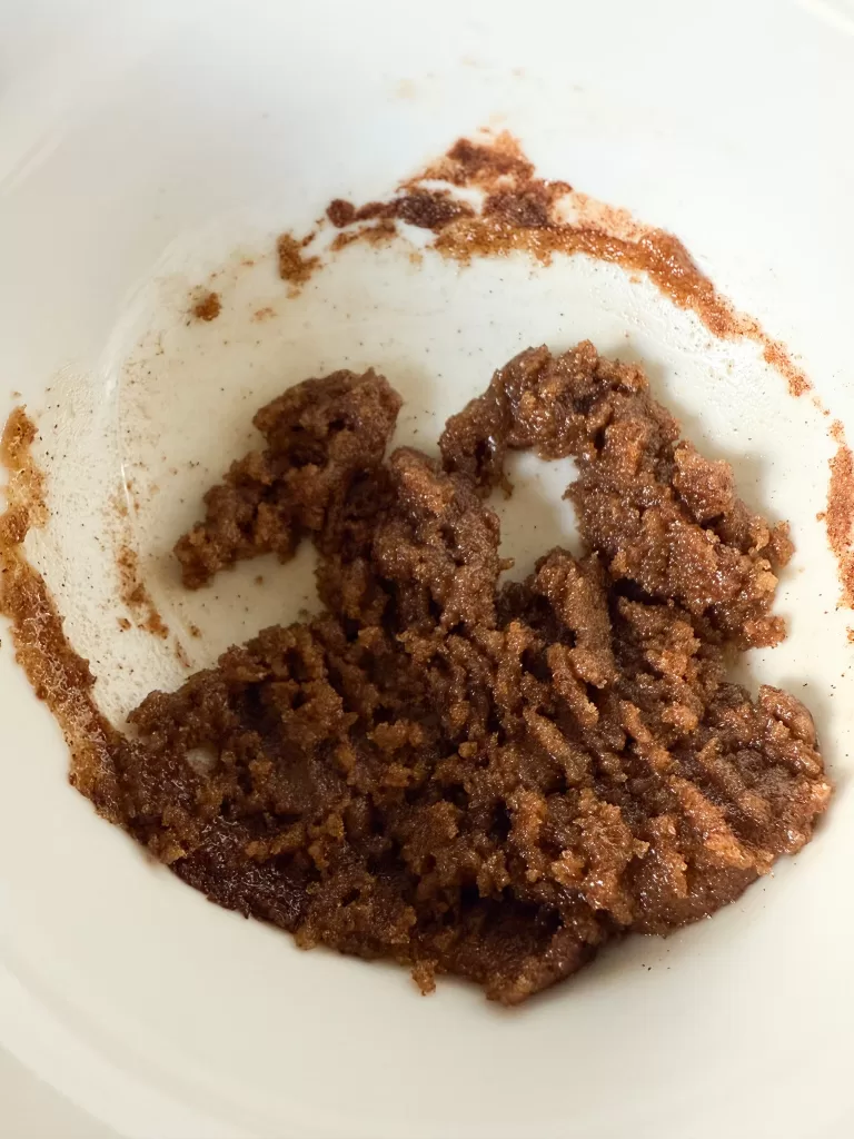 - For the filling: combine brown sugar, cinnamon, flour, butter vanilla emulsion, & melted butter. Set aside.