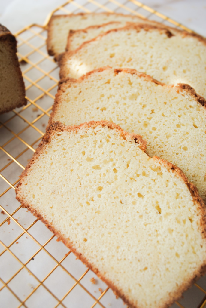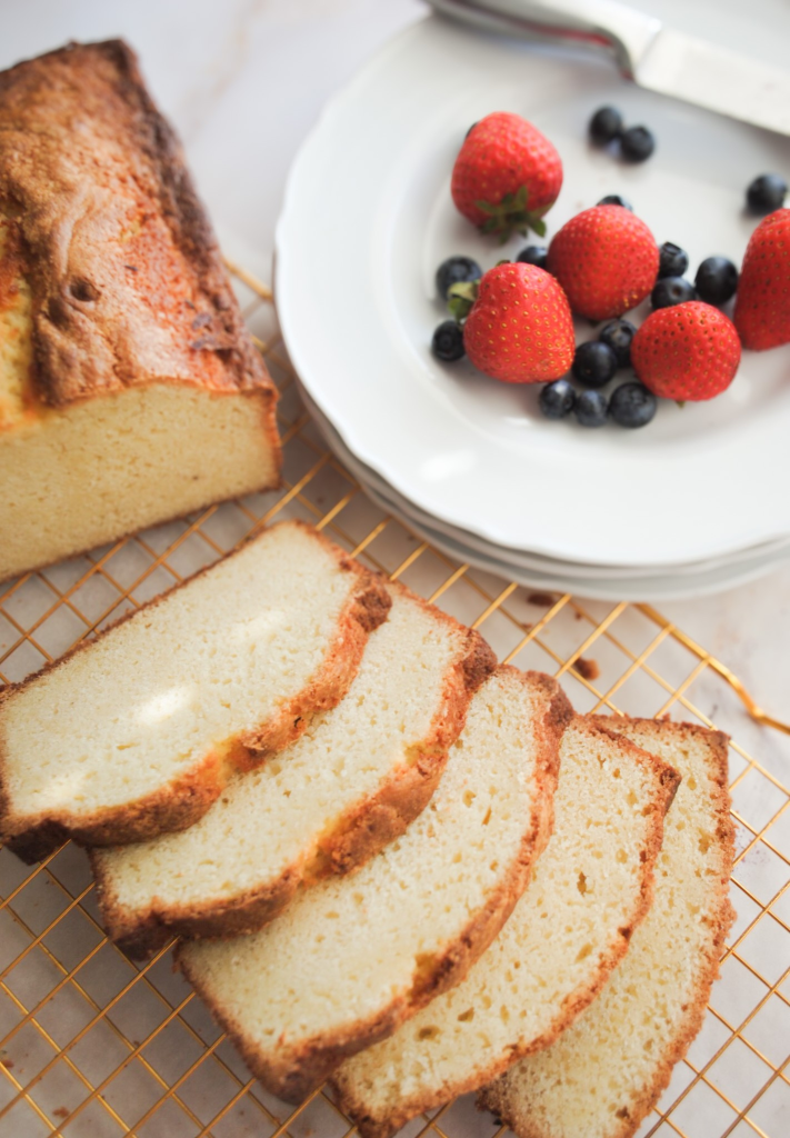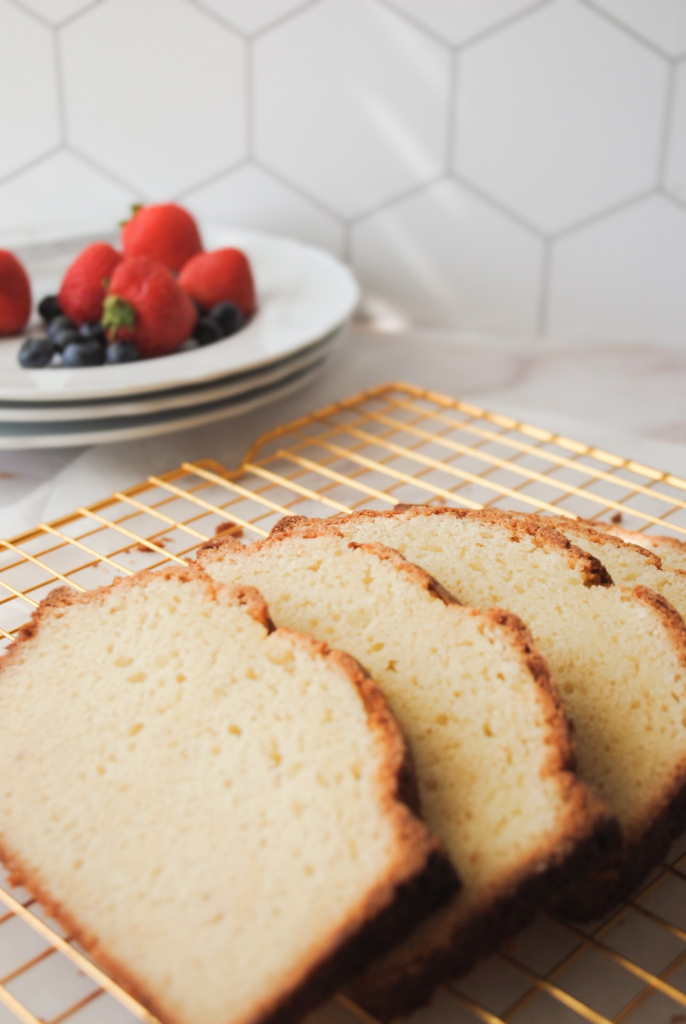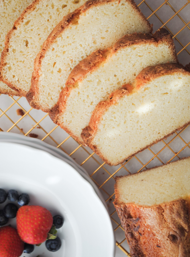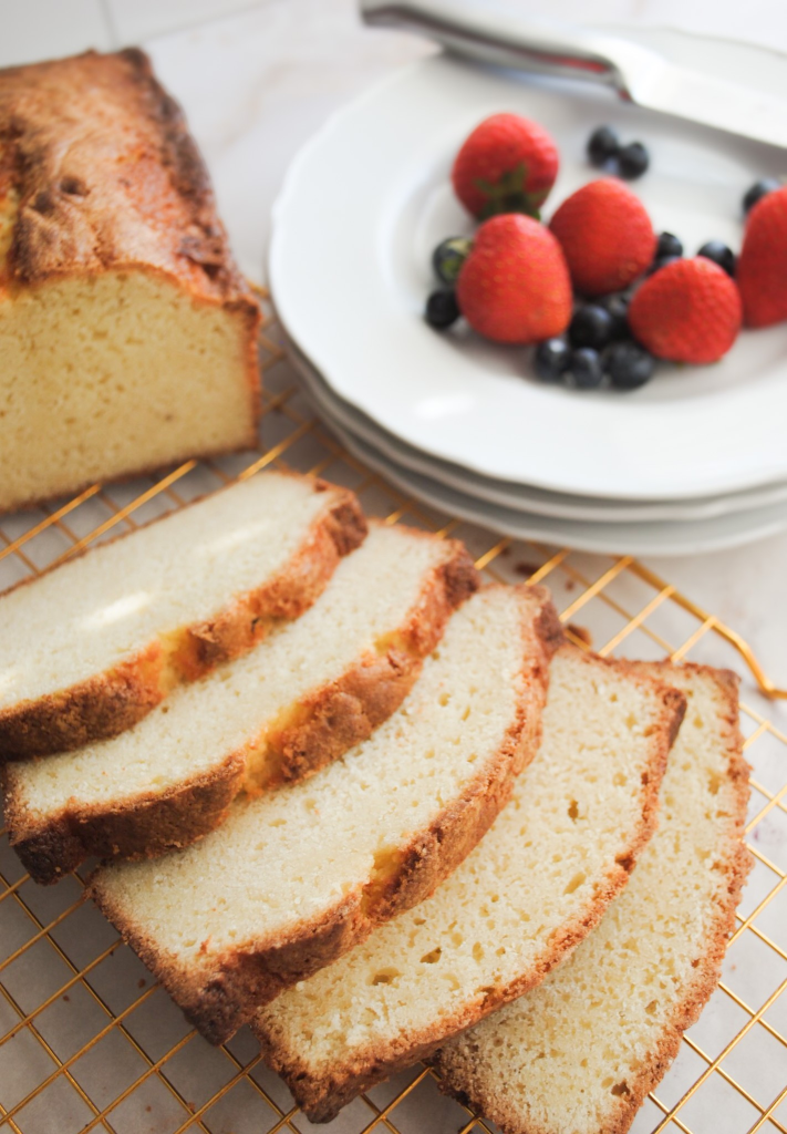 A great pound cake should have a dense, buttery crumb that’s still tender and soft. Not dry, not crumbly—just right. This one delivers. The outside bakes up with a slightly crisp golden edge, while the inside stays soft and moist. It slices beautifully and holds up well. It is perfect for enjoying with fruit, coffee, or just on its own!