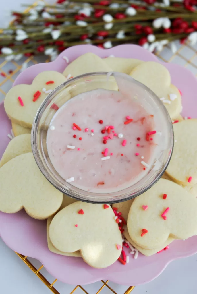- Be sure to try my Sugar Cookie Icing for an easy, four-ingredient icing option! It tastes delicious and is perfect for decorating sugar cookies if you want an alternative to the strawberry glaze.