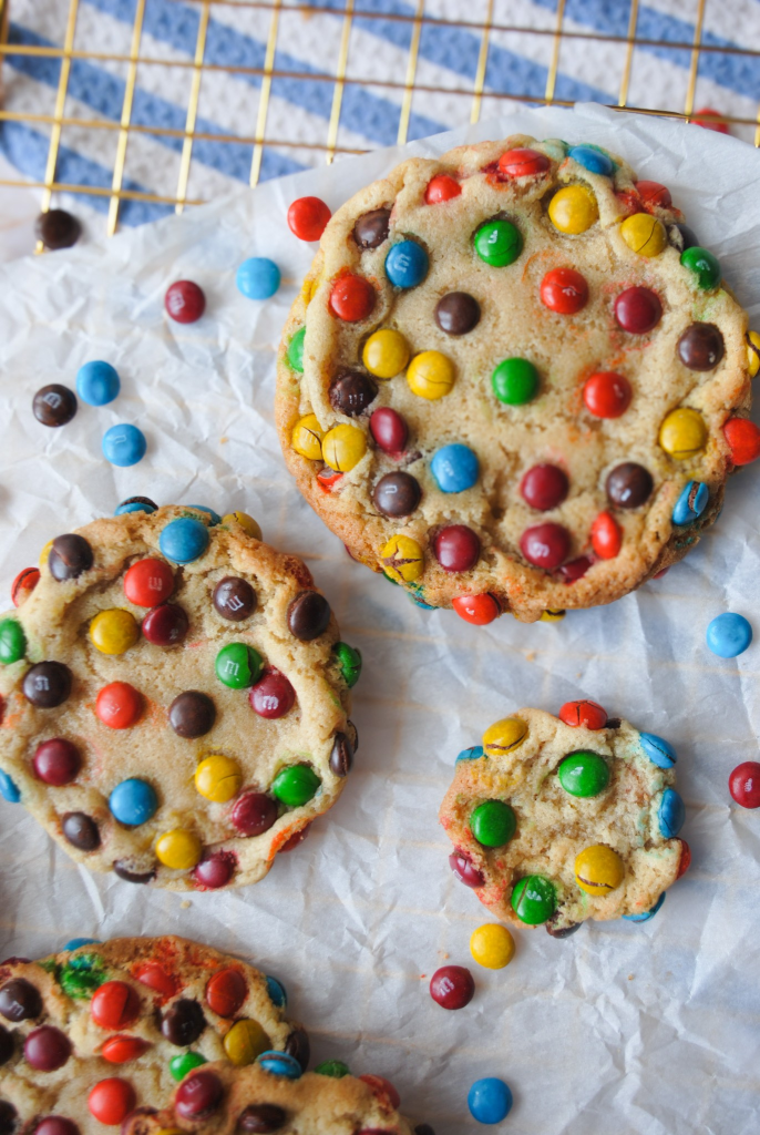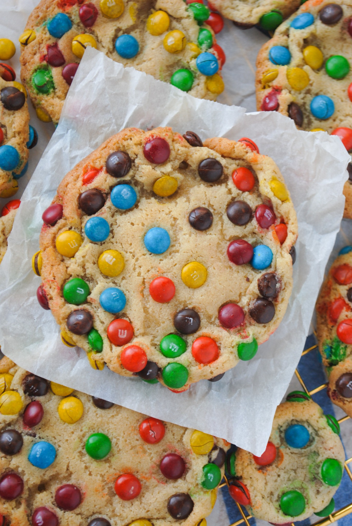 - I’ve made these cookies in 3 different sizes: Large, bakery sized cookies; classic medium sized cookies with a #40 cookie scoop; and mini cookies using a 1 tsp sized scoop. Honestly – all 3 were fantastic! Just know – the smaller the cookie, the more surface area you need to cover overall with mini M&Ms. This recipe calls for one bag of mini M&Ms, which will work for the larger sized cookies. If you make a full batch of smaller cookies you will need more M&Ms.