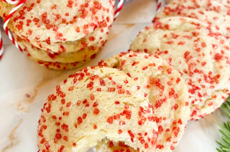 If you’re already a fan of traditional sugar cookies, you may wonder: what makes the sprinkle-rolled version so special? The answer lies in the combination of textures and flavors. Rolling the cookie dough in colorful sprinkles not only adds a festive touch but also gives each bite an added crunch. The sprinkles provide a bit of texture contrast against the soft, pillowy interior of the cookie, while their sweetness enhances the overall flavor. Plus, there’s just something undeniably cheerful about a cookie covered in a rainbow of sprinkles—perfect for any celebration! Here I’ve made them with festive red and white sugar sprinkles for Christmas, but these are so easily customizable to any event or occasion.